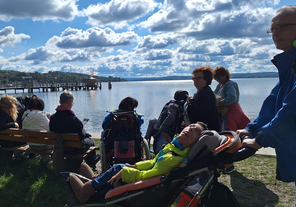 Die vom 16.-20. September 2024 angebotene AKG- Familienfreizeit fand in einem komplett barrierefreien Haus direkt am Ammersee statt. Das vom Landesverband Bayern für körper- und mehrfachbehinderte Menschen e. V. getragene Haus beeindruckte auch durch seinen NaturErlebnisPark mit 14 Erlebnisstationen. Eine Lagerfeuerstelle mit Holzbackofen stand den Gruppen für Stockbrot oder Pizza zur Verfügung. Der hauseigene Steg zum Ammersee war mit Rollstuhl befahrbar. Nach Bedarf konnten Ruder- und Tretboote ausgeliehen werden. Auch eine Outdoor- Eisstockbahn stand zur Verfügung. Höhepunkte waren die Rundfahrten auf dem Ammersee mit den Schiffen der Bayerschen Seen- Schifffahrt. An zwei verschiedenen Tagen konnte die Gruppe eine südliche und eine nördliche stimmungsvolle Rundfahrt mit dem Dampfer erleben. Startpunkt war jeweils die Anlegestelle Herrsching mit ihrer beeindruckenden 10 km langen Strandpromenade.